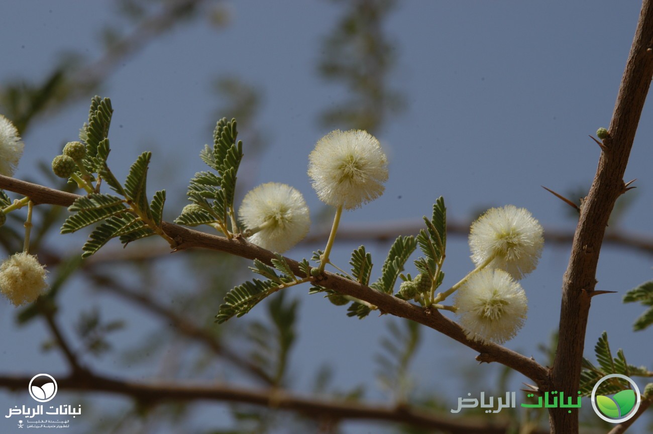 A. gerrardii is a variable species. The variety iraquensis (sant al waraqi) has a rough, spiny trunk and finely fissured, dark-coloured bark, which does not peel off in strips like that of the whitish bark of A. gerrardii var. najdensis, (sant al najdi). The seeds of iraquensis are held in sickle-shaped, flat pods which are beige-coloured, long and straight, and covered by fine, grey hairs. Those of najdensis are strongly curled, almost circular pods, and a much darker brown. A. gerrardii has a distribution in the northern part of the Arriyadh region and Saudi Arabia and is usually found in depressions and watercourses. A small tree with ascending branches and a flattened crown. It has a long, straight and single stem with a reddish bark. Young, strong branches are densely covered with grey velvety hairs. Numerous thorns are arranged in pairs and white in colour, while mature trunks are almost thorn-free. Singular, round, creamy-white, sweet-scented flowers appear from October to February. During a very cold winter, the tree is deciduous. Propagated by seed, A. gerrardii is fast-growing, hardy to about –10 °C, and drought-resistant. It will become a spreading shade tree, when watered frequently. Its winter flowers make the tree an attractive species for arid landscape design in both intensive and extensive landscape situations. It is suitable for most gardens with a native look, and valuable for revegetation schemes, and roadside planting. Little maintenance is required once trained well into a straight leader.