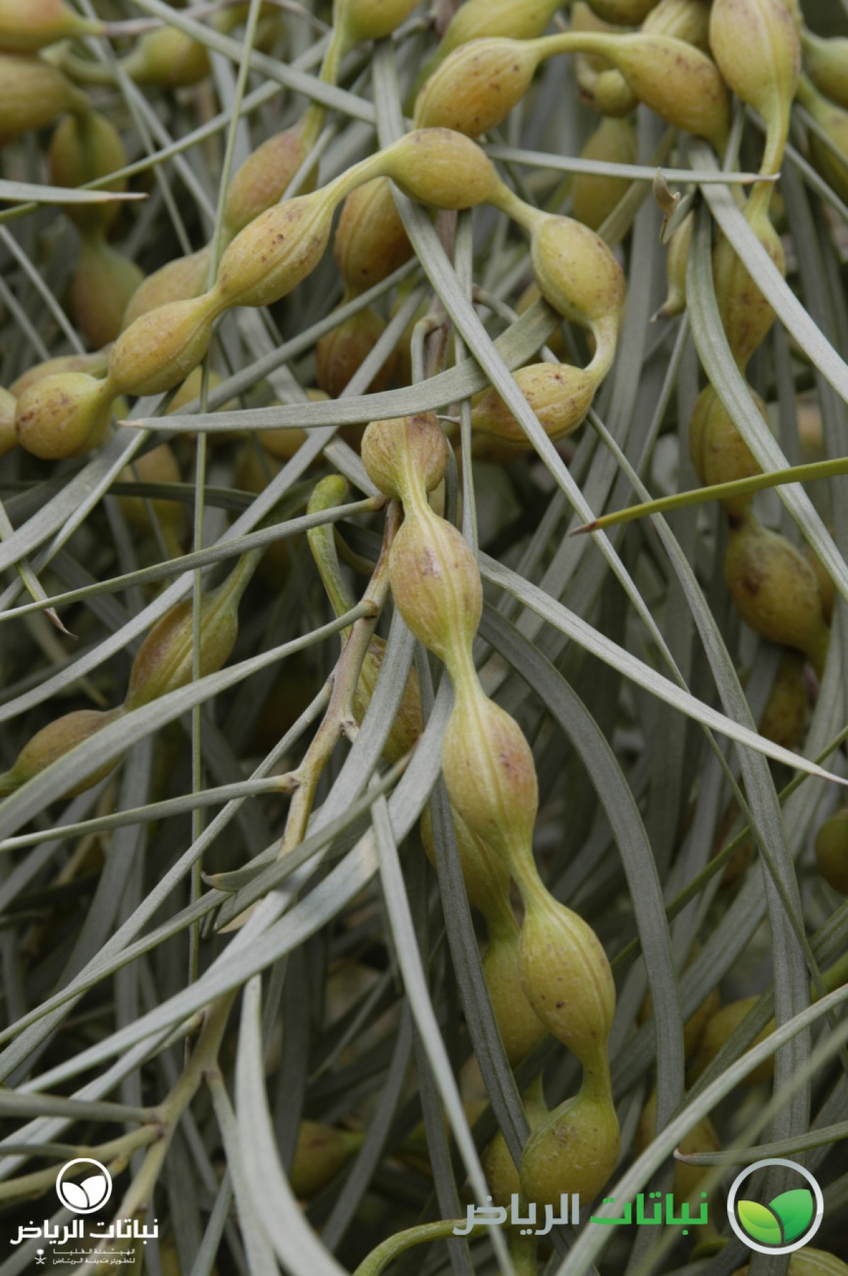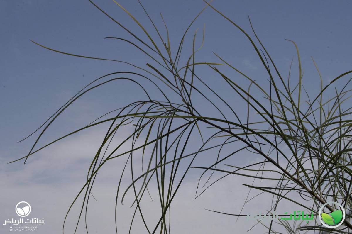 This is a beautiful, slightly weeping, tall shrub, widespread in its native Australia. Its habitat there is amongst tall trees, growing in gravelly soils, sand and clay on gentle slopes and wasteland or in undisturbed natural vegetation. It has high potential for planting in Arriyadh. The shrub has an angular, branching structure with drooping tips bearing narrow, willow-like soft phyllodes or leaves, distinguished by their silvery blue-green colour. Stems and leaves are reddish-pink when young. Profuse, pale yellow sprays of fragrant flowers emerge from October onwards until early spring, from conspicuous red bracts. It is a very adaptable shrub, tolerating most soils and lime. It is also very tolerant of extended dry periods, moderate frosts up to –10°C, and also saline soils. A. iteaphylla grows in full sun, even tolerating partial shade, and needs a well-drained position. No irrigation is required once established, but watering is necessary over long dry periods. The shrubs attract birds and are aromatic. Propagation is by scarifying the seed or boiling it in water. Plants flower well after two years. Low maintenance is required, branches do not resprout after pruning. An annual application of a slow-release fertiliser improves growth. A. iteaphylla has a high landscape value. It makes a good screen or low windbreak, and can be planted as an ornamental feature or an interesting hedge. A prostrate form can be used as a mounding ground cover. In the garden, A. iteaphylla is an acacia which provides colour during the winter.