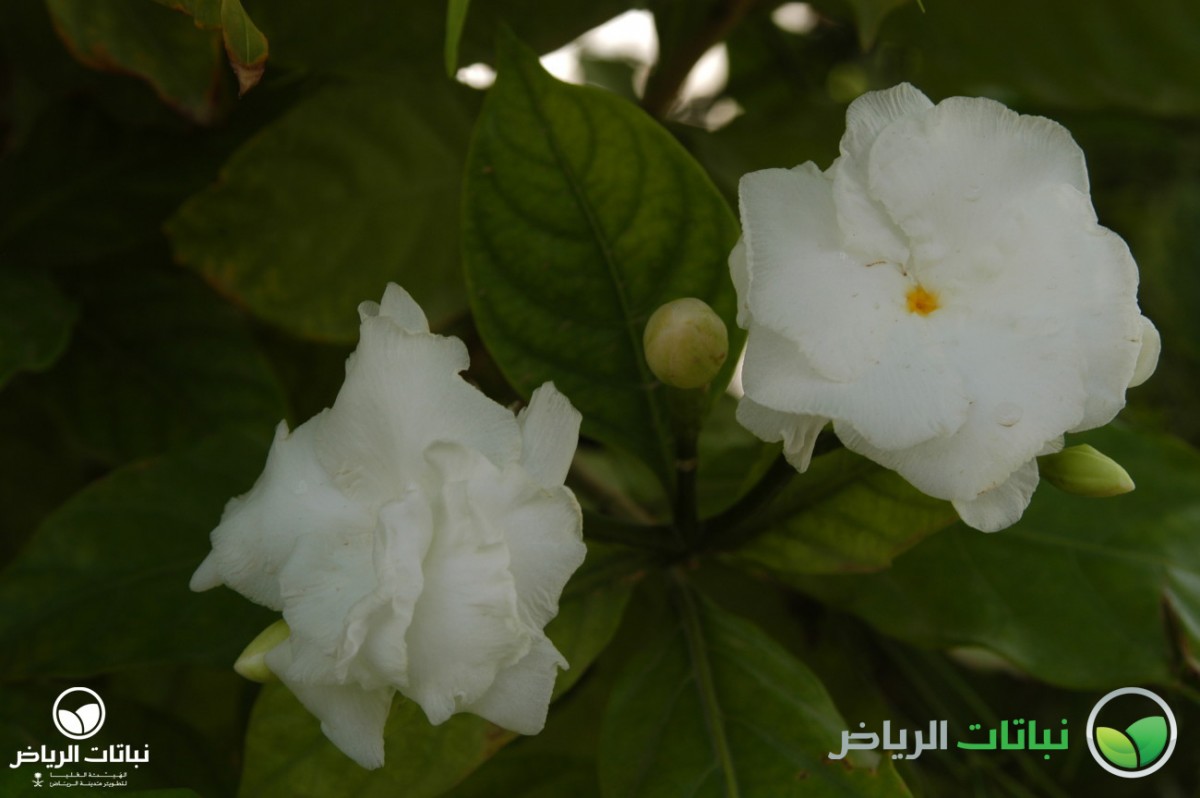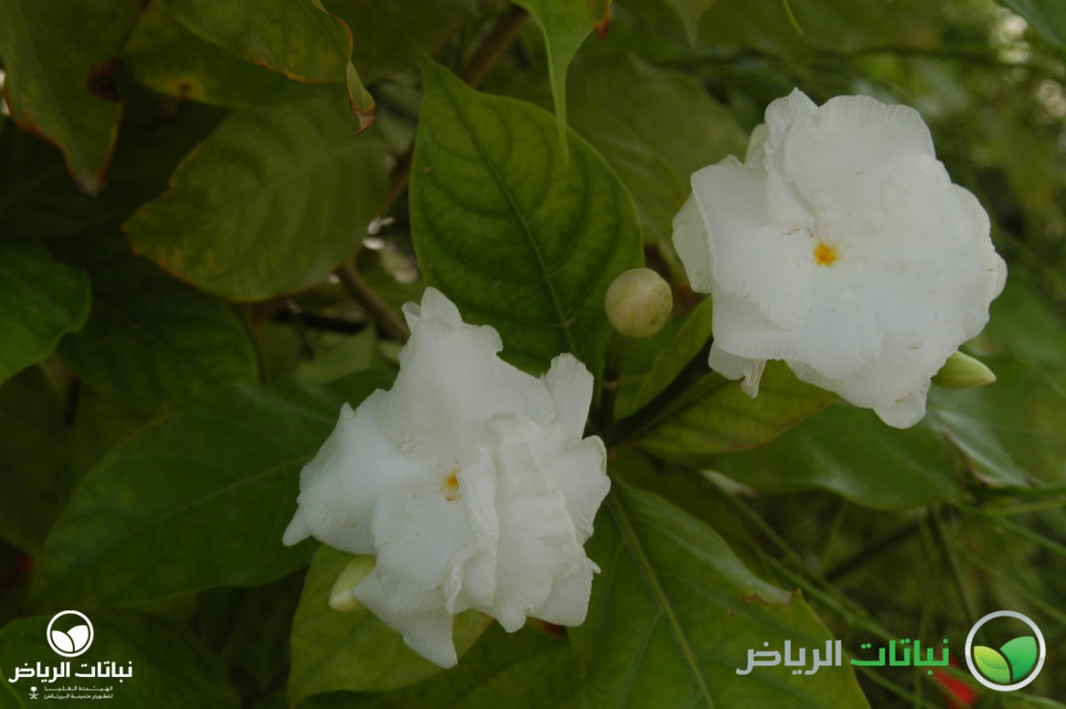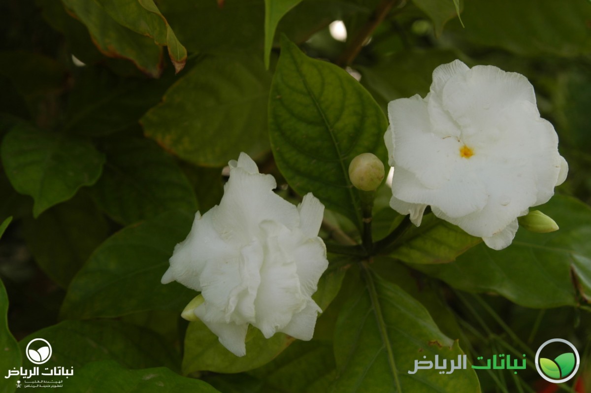 In subtropical China, one may find the Gardenia or Cape Jasmine growing wild to a shrub of about 1.5 metres in height and a little more in width. Its shiny, evergreen foliage is very attractive and measures some 10 cm in length. The magnificently scented flowers appear in spring. Their ivory petals contrast well with the dark-green leaves. Cultivars often show double flowers and even variegated foliage. Berries contain seeds that are embedded in an orange pulp. Established plants withstand full sun if the water supply is excellent. They generally do better with some afternoon shade without reducing the floral splendour. If planted in the ground, the soil must be enriched with peat or compost. As heavy feeders, they should receive frequent fertilisation in early spring, early summer and early autumn with an acid type. Irrigation must be regular and thorough, with the lowest possible salt content. Gardenias are prone to overwatering, both in poor-draining soil and in containers. Apart from this sensitivity, they do well in pots and troughs, since they grow quite slowly to become a dense bush and are not harmed if they become rootbound. Pruning can be done in autumn, but is rarely necessary to shape these compact bushes. Gardenias are also susceptible to a black mould which forms on the leaves, as well as nematodes, but the plants’ beauty is worth the effort to replace infested soil. G. augusta is an ideal shrub only for a small-sized garden without exposure to full sun or strong winds. It is not always successful in Arriyadh.