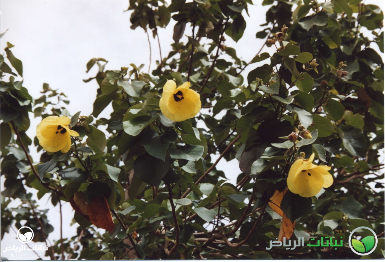 The Seacoast Mallow is found growing wild in subtropical, coastal regions of southern Asia. It is an ornamental tree attaining up to 10 metres in height and width and, owing to its provenance along watercourses, it tolerates stagnant water better than other trees. High salinity and even brackish water are tolerated. It grows fast in a variety of soils and tolerates some drought, but does not appreciate low atmospheric humidity combined with prolonged dryness. Leaves are heart-shaped, evergreen and make a dense crown. Bright-yellow petals form a cup some 15 cm across with a long carpel protruding from a crimson centre. After just one or two days, they are shed, so that trees are not ideal canopies for pedestrian precincts. Often, they turn orange or red before they are dropped. Apart from this bad habit, there are no further disadvantages, so that this species is often seen as an appealing street tree. Seeds should be stratified and soaked in warm water prior to sowing, and hardwood cuttings also grow readily to imitate the traits of the parent plant. The latter will also flower sooner than plants grown from seeds. The Seacoast Mallow is a vigorous plant that does well in containers. It withstands pruning and may be kept as a small standard or used as a hedge for screening. For flowering, it requires plenty of light, and frequent irrigation with occasional fertilisation is recommended. Light frosts may damage the leaves, but plants recover quickly. There is often confusion in Arriyadh between this plant and Thespesia populnea.