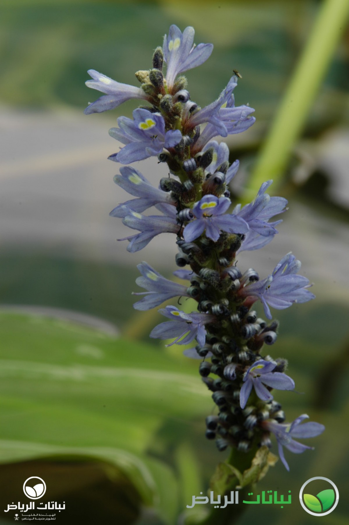 نبات مائي أو نبات مستنقعات معمر. موطنه الأصلي أمريكا المدارية وينمو عادة حتى ارتفاع 1 م. وانتشر إلى العديد من الأقطار والمناخات في أنحاء العالم كافة. وهو مناسب للزراعة في حواف البرك والبحيرات في الرياض نظراً لأنه غير حساس للصقيع خلافاً للعديد من النباتات المائية المدارية. ويتكون النبات من مجموعة من الأوراق القائمة رمحية أو قلبية الشكل بعرض يصل إلى 20 سم وحتى 35 سم طولاً نامية من نقطة قاعدية واحدة. والنورات سنبلية طرفية تحمل أزهاراً بنفسجية مزرقة جذابة طولها 15 سم وتتكون في الفترة من مايو وحتى أكتوبر. ويجب أن يزرع هذا النبات تحت ضوء الشمس الكامل أو الظل الخفيف عند استخدامه على حواف البرك في الحدائق أو عند استخدامه في الحدائق المائية. ولمنع انتشار هذا النبات داخل البرك الصغيرة يمكن زراعته في أوان تثبت في المياه الضحلة على حواف البركة. والأزهار الفردية تبقى ليوم واحد فقط والسنبلة الكاملة قد تبقى لأيام عدة. والنبات حساس جداً للذبابة السوداء. والتسميد غير ضروري نسبة لوفرة العناصر الغذائية في الماء. ويمكن إكثار النبات بسهولة بتقسيم النباتات الكبيرة. وعمليات الصيانة تشمل تشذيب النبات لتحسين مظهره والحد المستمر من النمو غير المرغوب فيه.